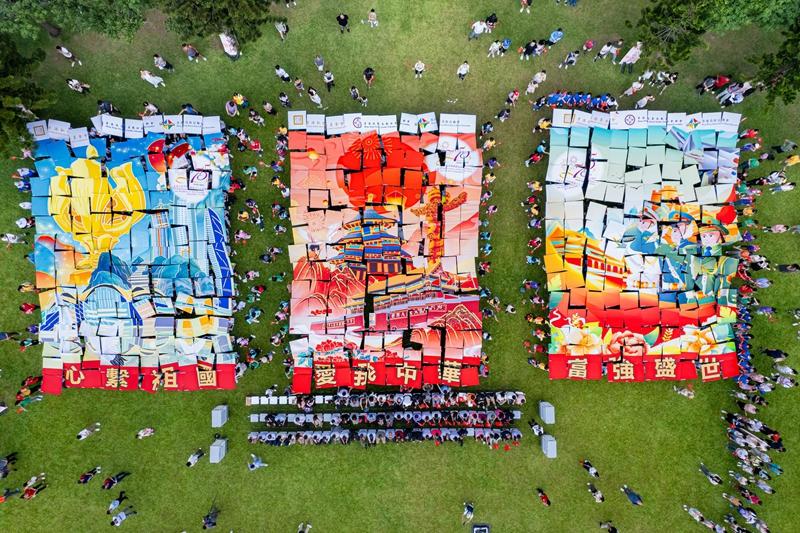 在中山纪念公园,180余所学校的约千名师生家长共同拼出3幅巨型拼图:爱我中华、富强盛世、心系祖国。“希望孩子们把爱国的种子埋入心灵深处,为国家的繁荣昌盛作出贡献。”活动主办者之一、香港区家长教师会联会主席丁柏希说。