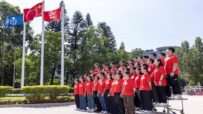 “中国红”闪耀在全港青少年的心中。举行国庆升旗仪式,近年来已成为香港众多大中小学的惯例。在香港科技大学,400余名师生在仪式后齐声高唱《我和我的祖国》,2万多人在线观看并点赞。