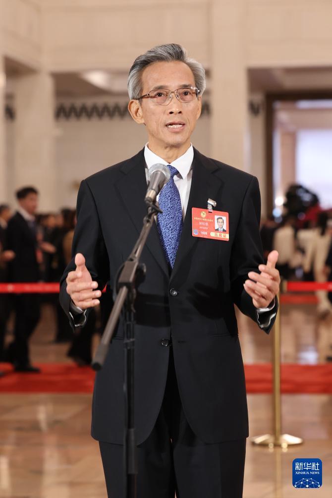 3月4日,全国政协十四届三次会议首场“委员通道”集体采访活动在北京人民大会堂举行。这是全国政协委员林松添接受媒体采访。
