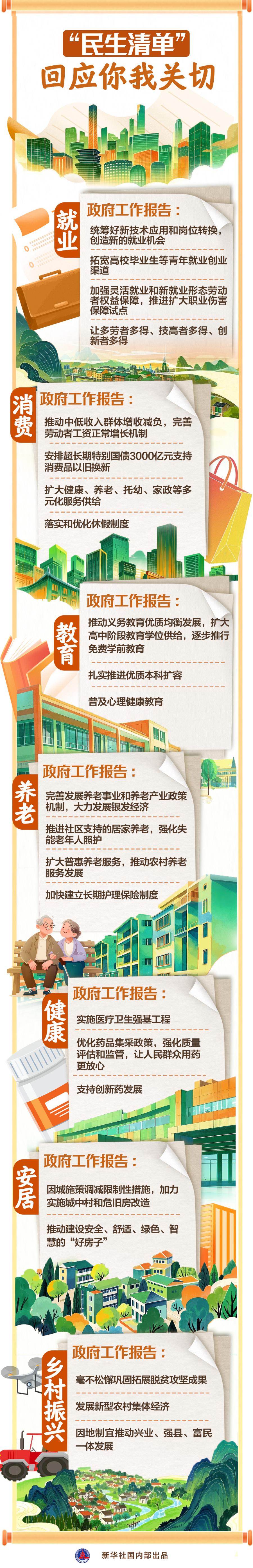 人民幸福安康是推动高质量发展的最终目的。梳理报告中有新意、有温度的惠民政策,一份“民生清单”跃然眼前,勾勒出一幅幅与你我密切相关的民生图景。