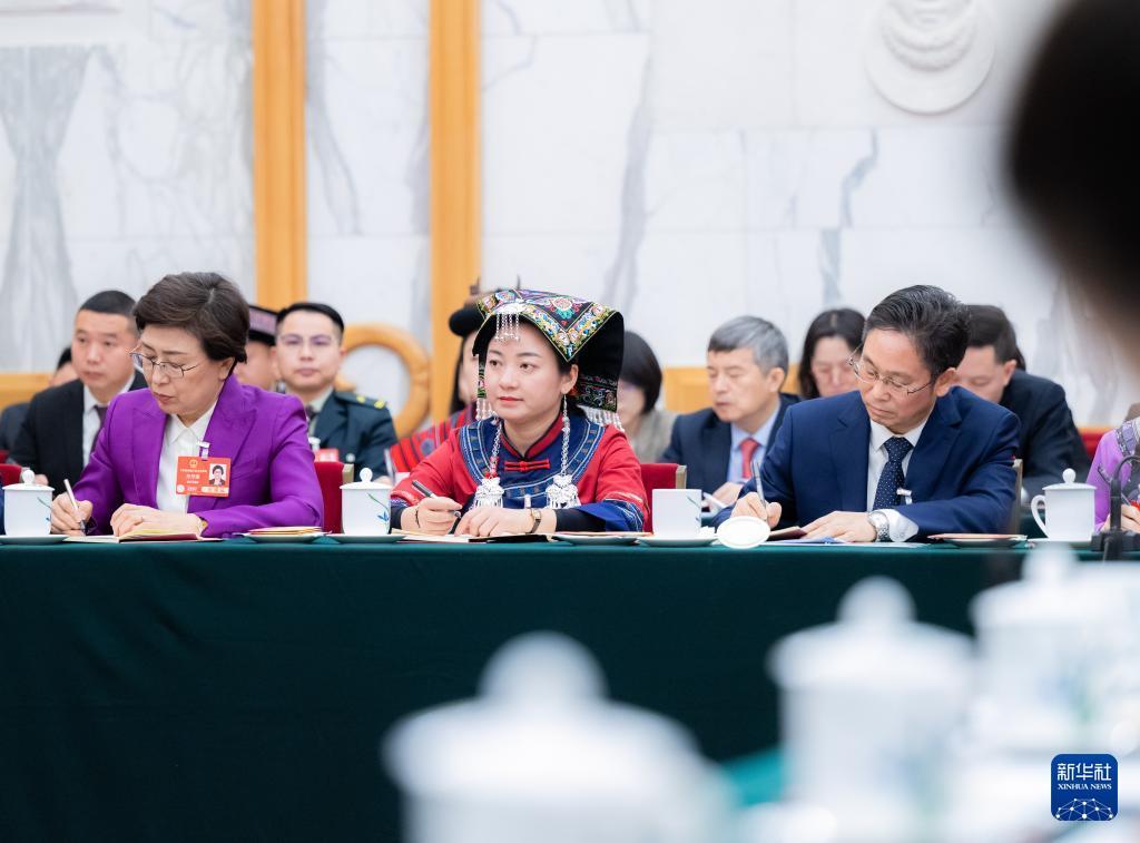 3月5日,代表们在贵州代表团全体会议上认真听会。