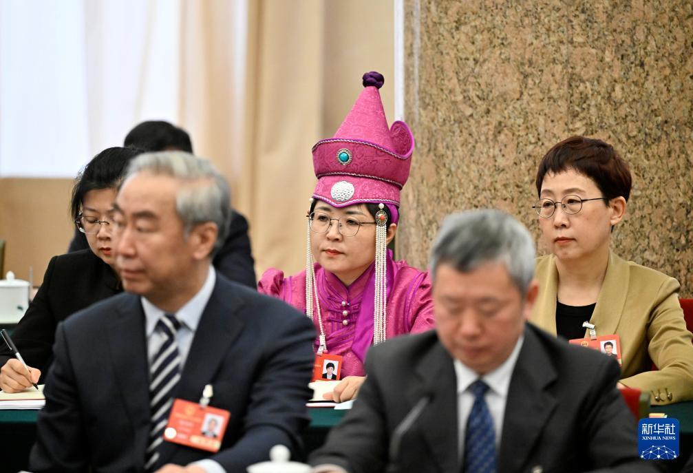 3月5日,代表们在辽宁代表团全体会议上认真听取发言。