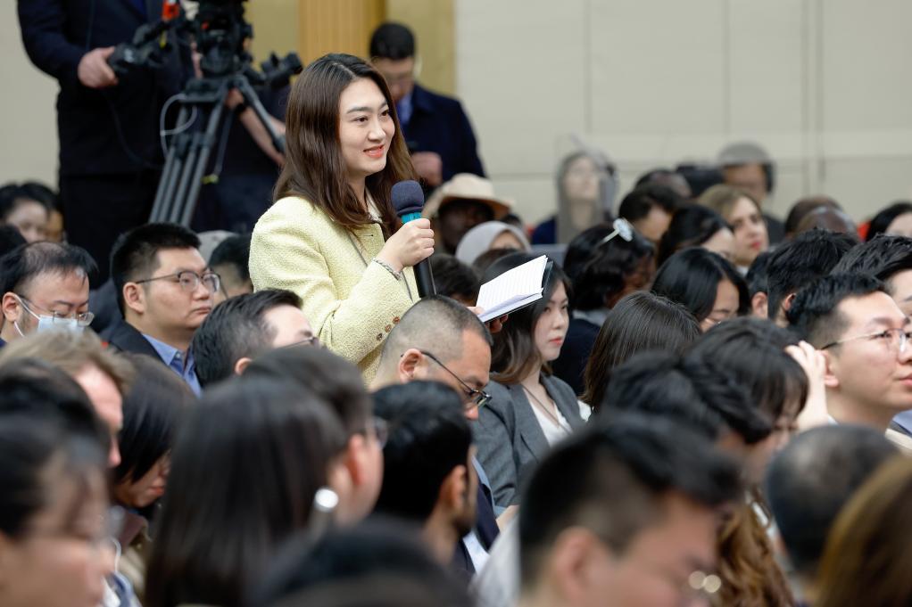 3月6日,十四届全国人大三次会议在北京梅地亚中心新闻发布厅举行记者会。国家发展和改革委员会主任郑栅洁、财政部部长蓝佛安、商务部部长王文涛、中国人民银行行长潘功胜、中国证券监督管理委员会主席吴清就发展改革、财政预算、商务、金融证券等相关问题回答中外记者提问。这是新华社记者在提问。