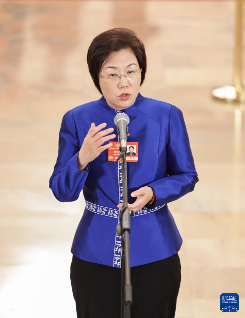 3月7日,全国政协十四届三次会议第二场“委员通道”集体采访活动在北京人民大会堂举行。这是全国政协委员徐晓兰接受媒体采访。