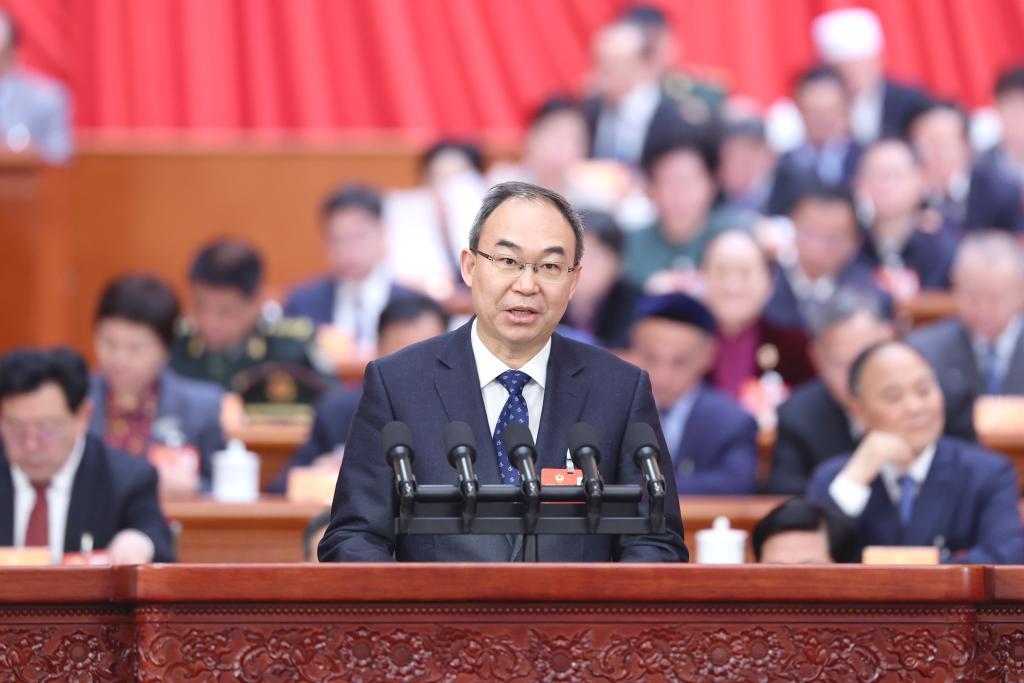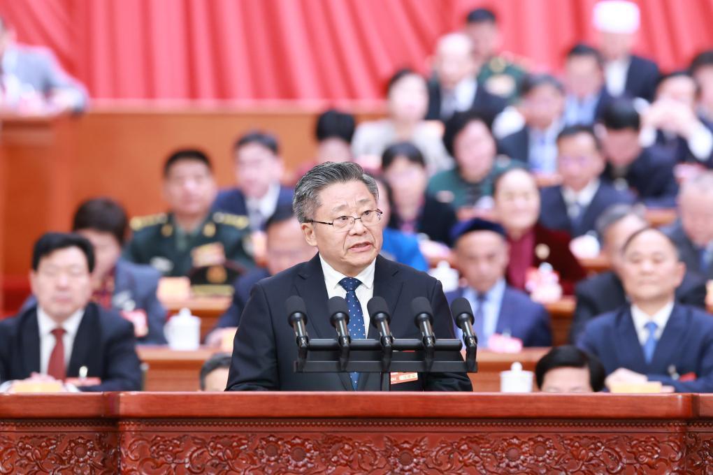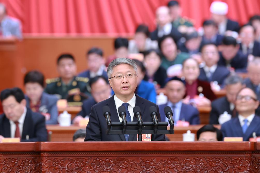 3月7日,全国政协十四届三次会议在北京人民大会堂举行第二次全体会议。这是巴音克西委员作题为《积极融入国家区域协调发展战略 推动民族地区高质量发展》的发言。