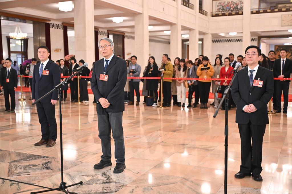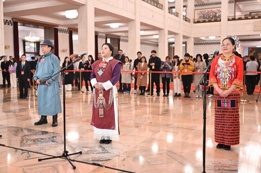 3月10日,全国政协十四届三次会议第三场“委员通道”集体采访活动在北京人民大会堂举行。