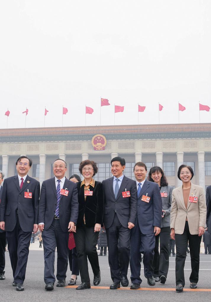 3月11日,十四届全国人大三次会议在北京人民大会堂举行闭幕会。这是代表们在合影。