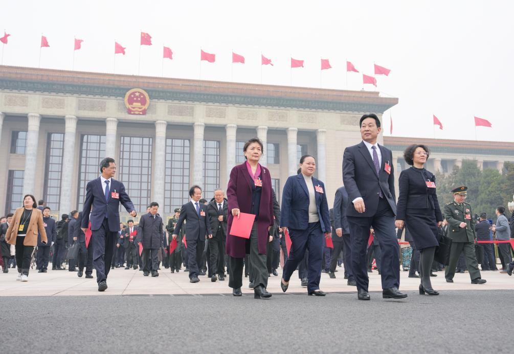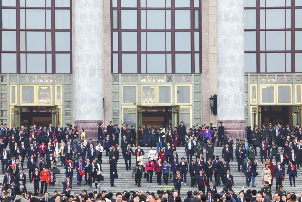 3月11日,十四届全国人大三次会议在北京人民大会堂举行闭幕会。这是闭幕会后,代表们走出会场。