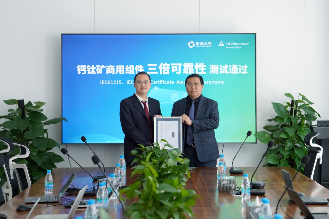 日前,昆山协鑫光电材料有限公司历时5个月自主研发的钙钛矿商用组件,以优异的测试结果通过了专业机构认证。这一突破标志着该企业成为全球首家达成此项成就的钙钛矿企业。