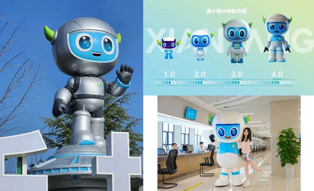 “高小新”角上的彩色渐变代表咸阳高新区三大产业,突出了咸阳高新区的多元化。