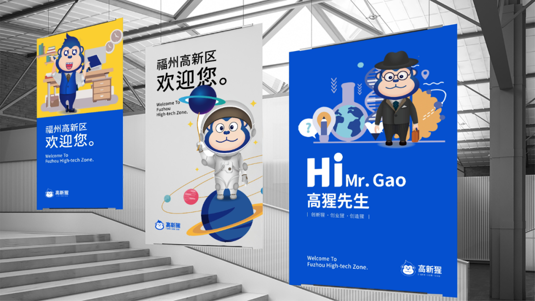“高新猩”的原型是一只可爱的小猩猩,被赋予“敢拼、敢闯、敢当”的内涵,代表着创新、创业、创造的福州高新区人文精神。